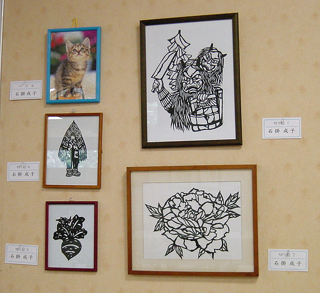 | 左上:ジグゾーパズル 他4枚:切り絵 |