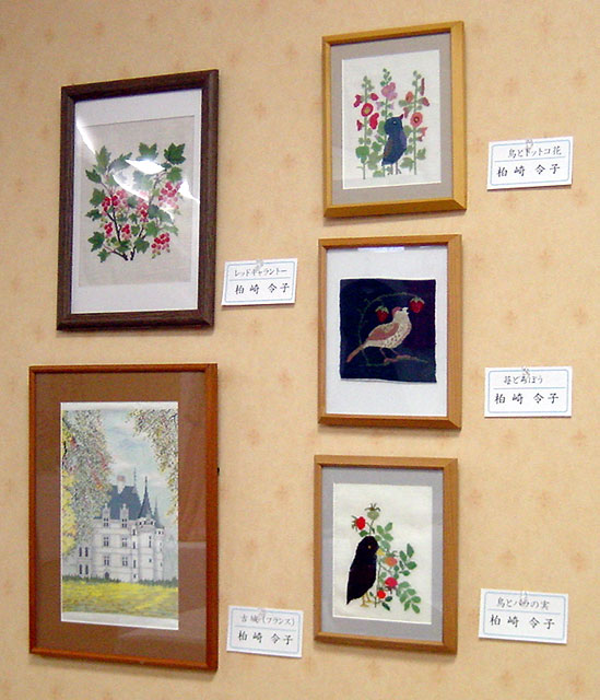 左上:レッドキャラント 左下:古城(フランス) 右上から:鳥とトットコ花、苺泥棒 鳥とバラの実 |