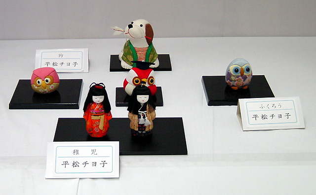 手前から稚児、ふくろう、狗 |