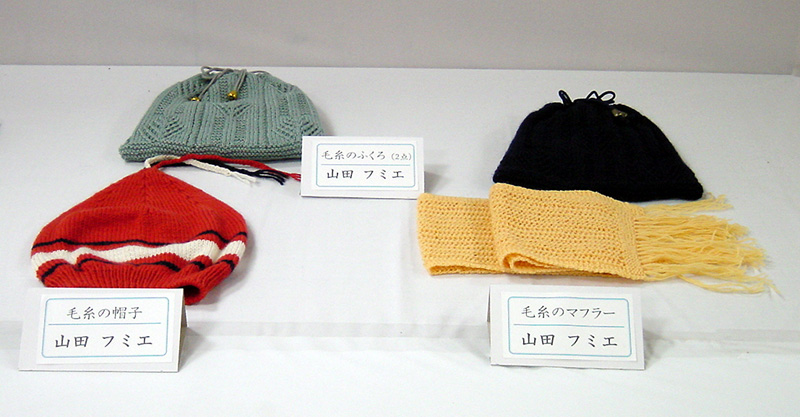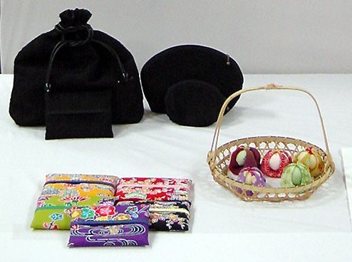 手前から:テッシュカバー お手玉 巾着袋・帽子 |