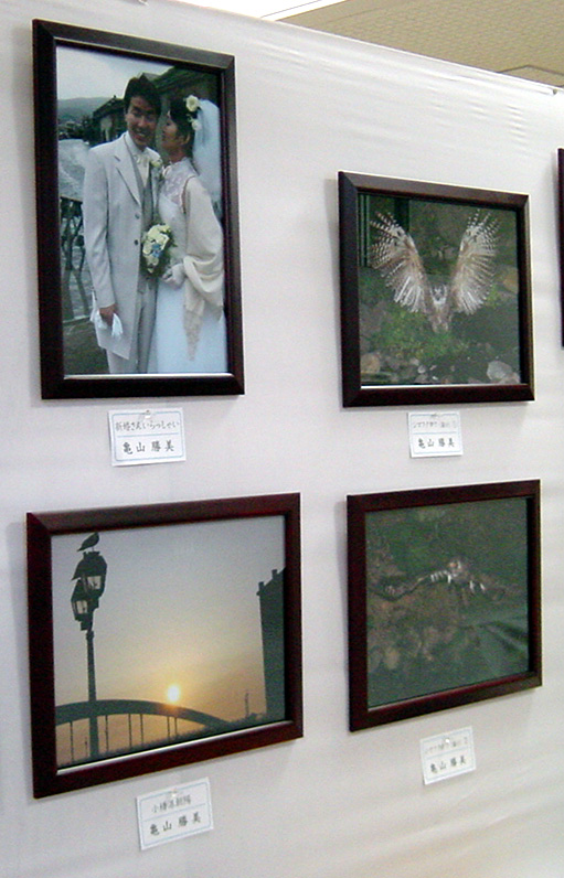 | 左上:新婚さん、いらっしゃい 左下:小樽港朝陽 右:シマフクロウ(羅臼) |