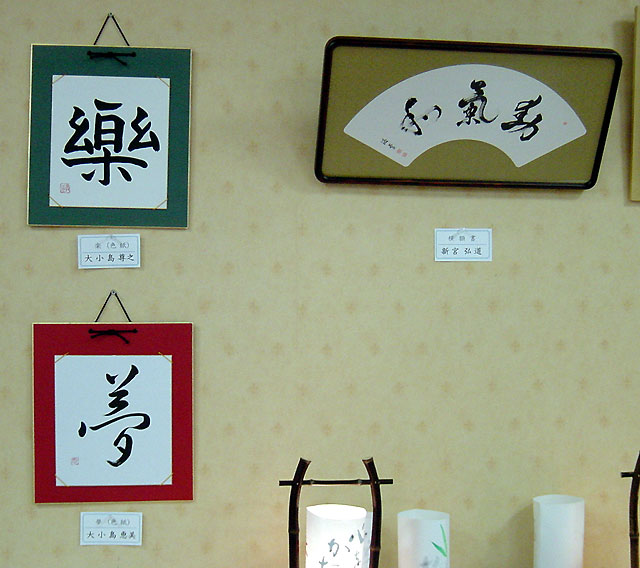 左2枚:色紙・楽、夢 右:横額書 |
