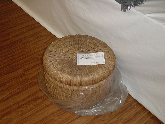 お櫃(ひつ)のご飯が冷めないように入れておく容器で、藁を編んで作られています。