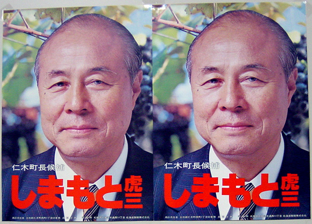 (故)島本虎三氏が仁木町長選挙に立候補したときのポスターです。