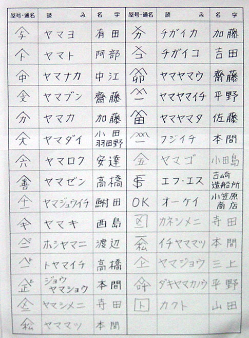 町内では、ほとんど苗字では呼ばず屋号で呼んでおりました。