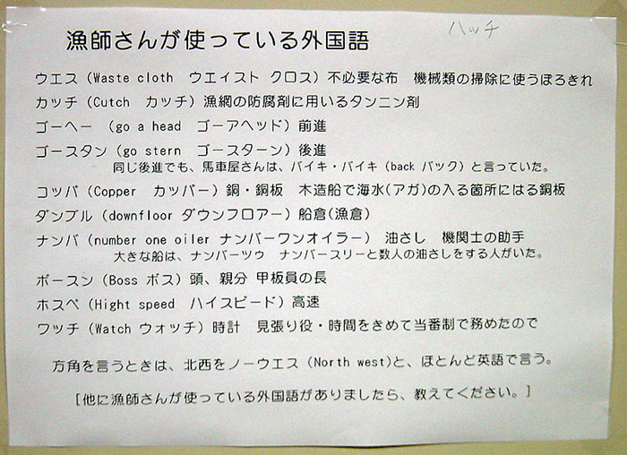 「デレキ」の左となりは「かぎ・ノンコ」と呼ばれるもので、いっかばこ(魚の入った木箱)や魚を引っ掛ける時に使用しました。