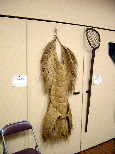 「蓑(みの)」は、菅(すげ)や藁(わら)で編んだ雨具です。