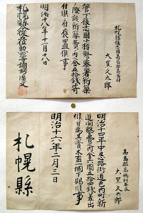この書付は、大黒昭様の曾祖父が県から、もらったものです。