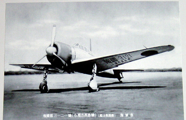戦時中(昭和10年代後半)、高島町民の募金と金属資源の供出によって建造された戦闘機の写真です。