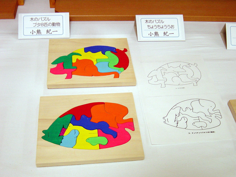 木のパズル 上:ブタ、下:ちょうちょううお |