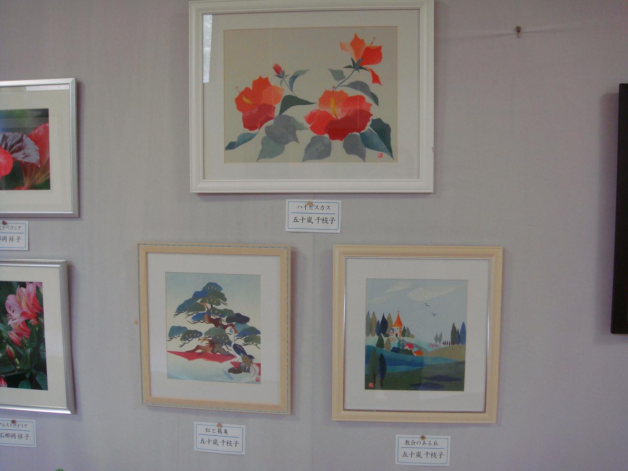ちぎり絵 ハイビスカス 松と鶴亀、教会のある丘 |