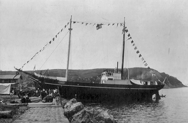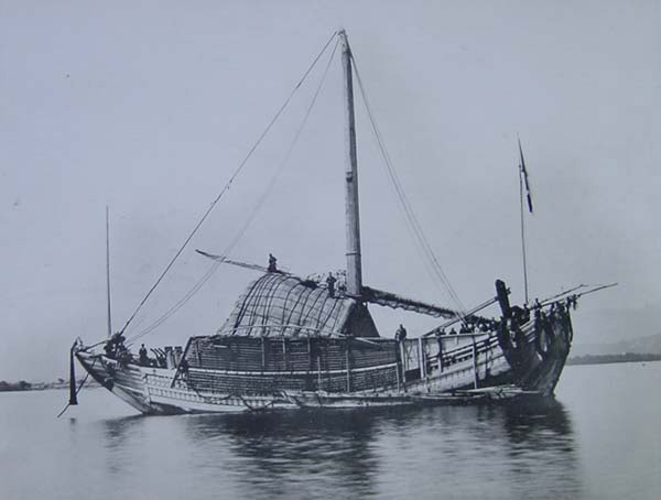 NO.2 ―解説― 高島神社の大広間に掲示されている写真の1枚です。 宮司様のお話しによりますと、この写真は高島神社周辺の元地主で あった右近様から譲り受けた、とのことです。 写真裏には「八幡丸(やはたまる)」「右近商事株式会社 小樽出張所」とあります。 ― 来館者様からの情報 ― 「八幡丸」は「福井県の右近家」の持ち船(北前船)でした。 同船は明治37年6月に北海道沖でロシアの水雷艇によって撃沈されました。 「右近商事」は右近家の会社で本社は大阪でした。 情報提供:迫口充久様(大阪市) (貴重な情報をお寄せくださいまして、ありがとうございました。) ― 北前船 資料舘(福井県) 「北前船主・右近家」様からの情報 ― 「右近家」は近江商人に仕えていた時期がありましたが、近江商人が衰退していく中で独立して 「北前船」を始めました。 画像の場所は不明で調査中です。右近商事は、右近家の会社です。 (貴重な情報をお寄せくださいまして、ありがとうございました。) 只今、更に詳細を調査中です。その他、この写真の詳細がお分かりの方は、 こちらまで御連絡下さい。 |