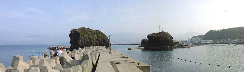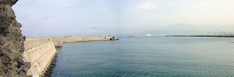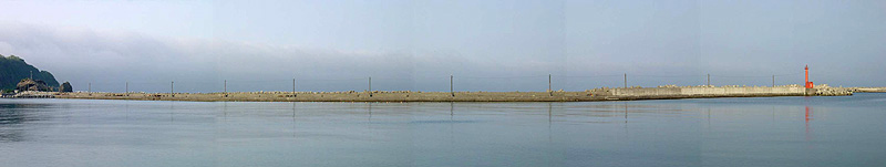 左:高島北防波堤先端(全長544m、昭和44年竣工) |