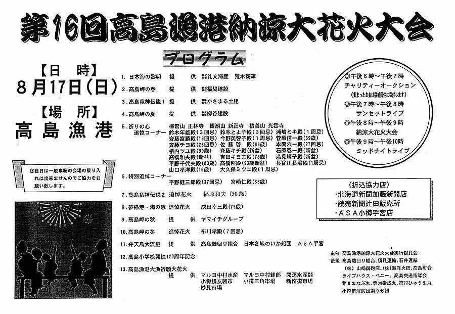 <プログラム・協賛> <チャリティオークション> <サンセットライヴ> <花火 打ち上げ!>