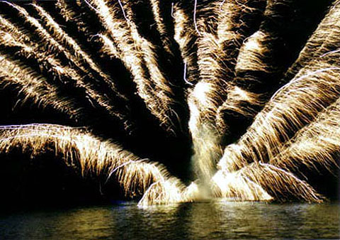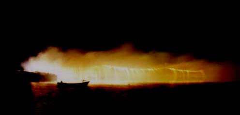 | 花火打ち上げスタッフ 弁天島へ向かう |