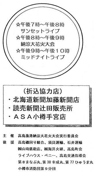 <道新掲載> <プログラム・協賛> <サンセットライヴ> <花火 打ち上げ!>