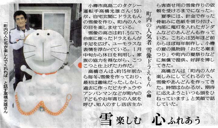 2005/02/23朝刊 小樽後志版 “雪楽しむ 心ふれあう” 『雪像のアーティスト』紹介 館内の関連画像 『あんどんのアーティスト』