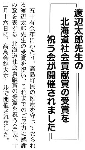 「渡辺太郎先生の北海道社会貢献賞 受賞祝賀会」A