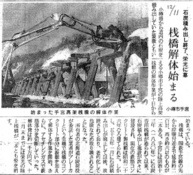 11月末までに国鉄が同桟橋上のレールを撤去次第、同社が約1千万円かけて桟橋2本と変電所、修理作業所の計2棟を取り壊す。