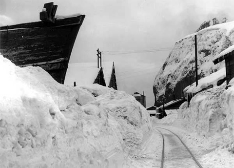 NO.2 鉄道軌道 ― 解説 ― 昭和20年代、手宮方向へ向かって撮影されたもので、 画像後方に日本製粉小樽工場が見えます。 バス通りの1本、山側の小路です。 小樽漁業株式会社(明治44年8月創立)は、高島海岸の将来は、 小樽港の延長として工業地帯あるいは倉庫、荷揚げ場としての 役割を果たすものとみて、大正5年、カヤシマ及びポントマリ壁下海岸線 (さき〜ニップン前の浜)の埋立工事に着手しました。 それと同時に、手宮駅からの鉄道軌道の延長工事も行なわれました。 NO.3へ続く・・・ ※出典:新高島町史 (昭和61年、高島町会発行) ※写真提供:大黒昭様 |