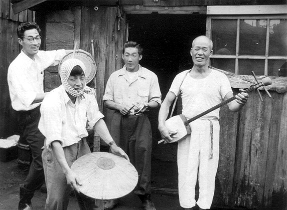 NO.11 高島楽友会 メンバーの在りし日 高島楽友会とは― 佐藤隆哉様からの情報 ― 三味線を持っているのがうちの爺様。 三原隆安さん(写真左・故人)は子供の頃、私に名前が似ていると言う事で、随分可愛がって貰いました。 横山文治さん(写真左から2人目)は、昔はちょうどうちとヘアーサロン笹浪さんの真ん中位の牛川に掛かった橋を渡った所に家が有りました。 本間幸夫さん(写真左から3人目)は稲荷町の坂の中腹あたりに住んでます。 この三人は親父の楽友会の仲間で、酒を飲んで酔っ払って撮った写真だと思われます。 写したのは多分、初雄おじちゃん(山川初雄様)でしょう。 オレの子供の頃は、楽友会の活動も活発で、高島祭りは言うまでも無く竜宮神社祭、古平にも遠征して奴を振っていました。 高島祭りの時は、縁起が良いと言う事で、隆安おじちゃんが家の中に入ってきて槍の様な物を横にして振っていってくれました。 神楽も正月の他一度舞を披露しそれを見た記憶が鮮明に残っています(管理人も記憶に残っています)。 ※写真提供:小樽市高島在住 佐藤隆哉様 ※写真撮影:小樽市高島出身 山川初雄様 (貴重な写真を御提供くださいまして、ありがとうございました。) |