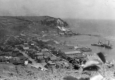 NO.8 大根収獲 ― 解説 ― 昭和20年代半ばの秋の「だいごんとり」の様子ですね。 場所は現在の新高島トンネルが通っている山の上です。 後方は小樽港で、北防波堤が見えます。 高島の漁港工事はこの4、5年後着工しました。 ※写真提供:大黒昭様 |