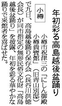 北海道新聞:2005年(平成17年)1月11日 夕刊年初彩る高島越後盆踊り ![]() で拡大 |