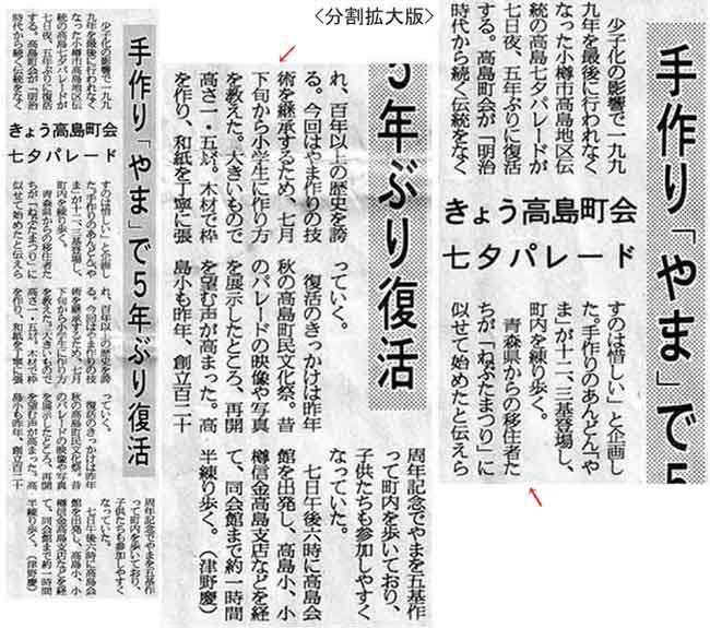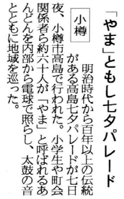 北海道新聞:2005年(平成17年)8月9日 夕刊「ヤマ」ともし七夕パレード ![]() で拡大参考: ![]()