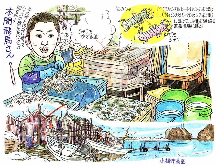 週末特集おふたいむ 海の幸 味さがし 小樽・シャキッと甘いシャコ (文・イラスト ながせ義孝様)