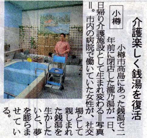 北海道新聞:2004年(平成16年)9月1日 夕刊介護楽しく銭湯復活 ![]() で拡大参考: ![]()