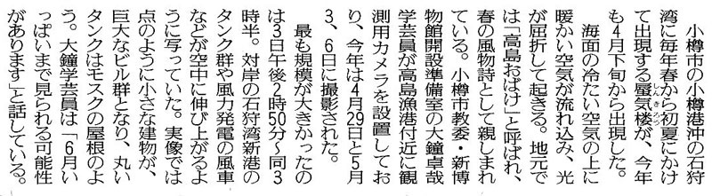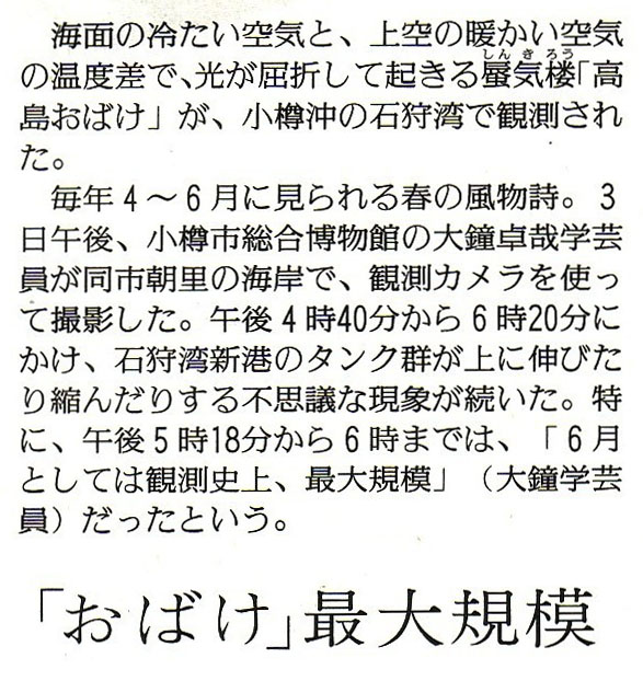 | 読売新聞:2008年(平成20年)6月4日 平成20年6月3日「高島おばけ」最大規模! 資料提供:小樽市高島町在住/佐藤隆哉様 ![]() ![]() で拡大