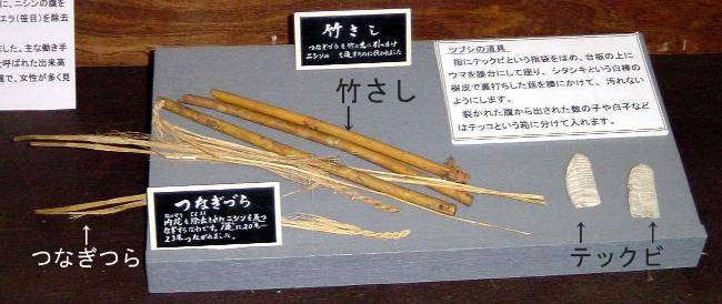 つぶし手によって腹を裂かれたニシンは、ワラをより合せた「つなぎつら」というヒモ状のものに20〜22尾ほどにまとめて結ばれて