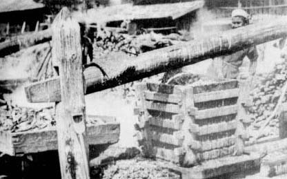 搾胴に圧力をかける方式は、テコ方式とジャッキ(キリン)方式がありました。