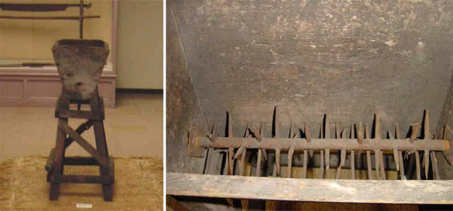 昭和になると、箱型の底部の開口部にある鉄製の歯を、横のハンドルで回転させて、