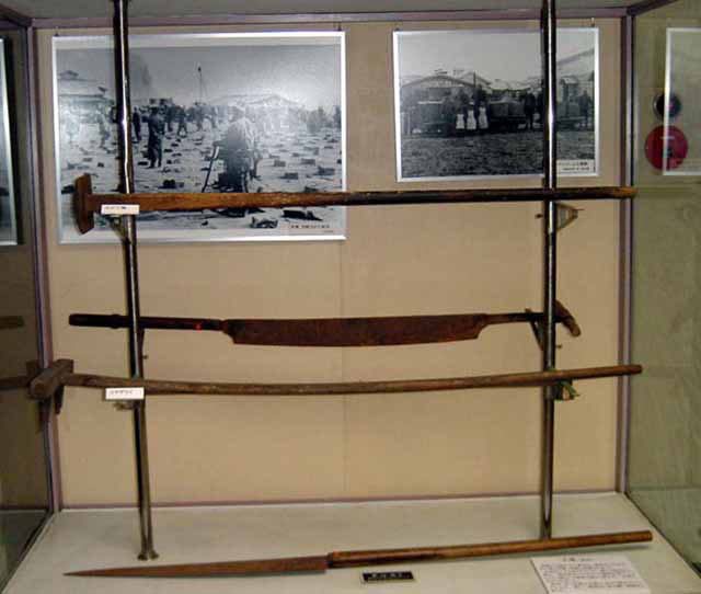 刃の部分は鉄製、柄の部分は木製です。砕いた粕玉を小さく切る時に使用しました。