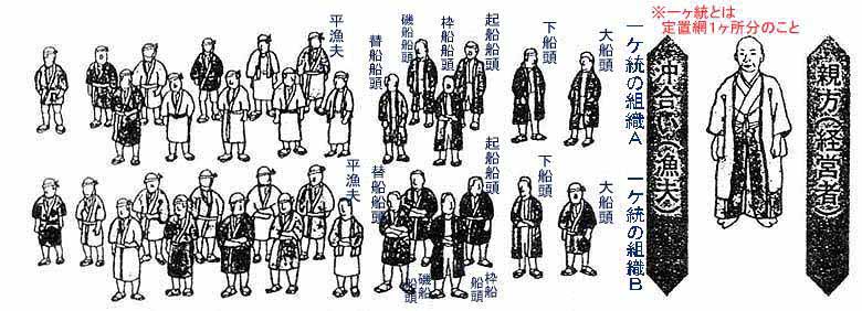 にしん場で仕事をする漁夫は毎年同じ漁場に来る人が多く、船頭・下船頭・起し船頭などが幹部(役人)といわれました。