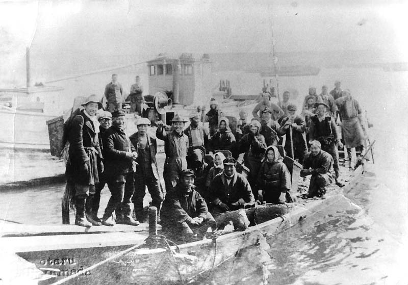 | ニシン場で働く人々 (高島稲荷神社秘蔵写真) ↓画像クリックで拡大 |