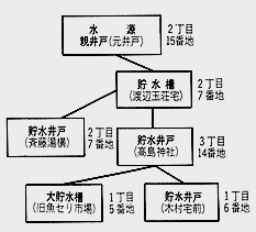 | 大正12年当時の給水系統図 (町史145ページより) |