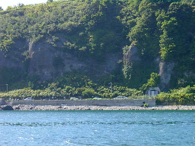 閉鎖された旧高島トンネル(平成15年、海上から撮影)