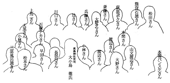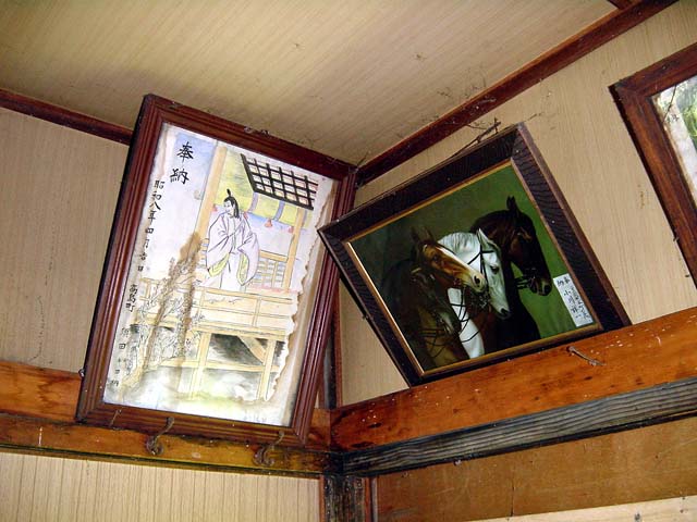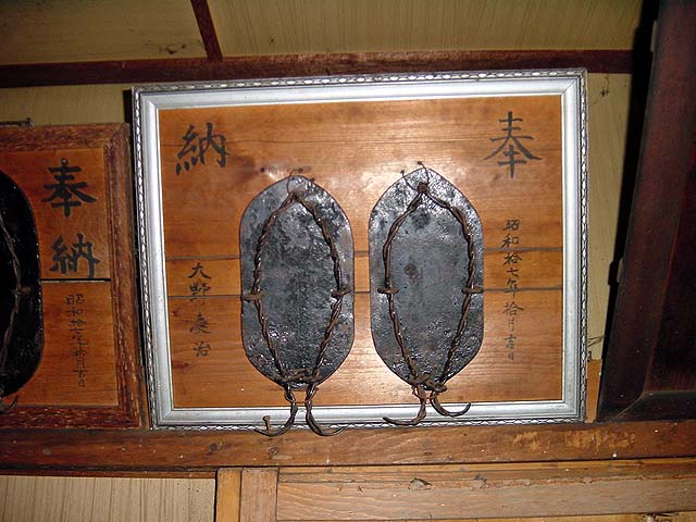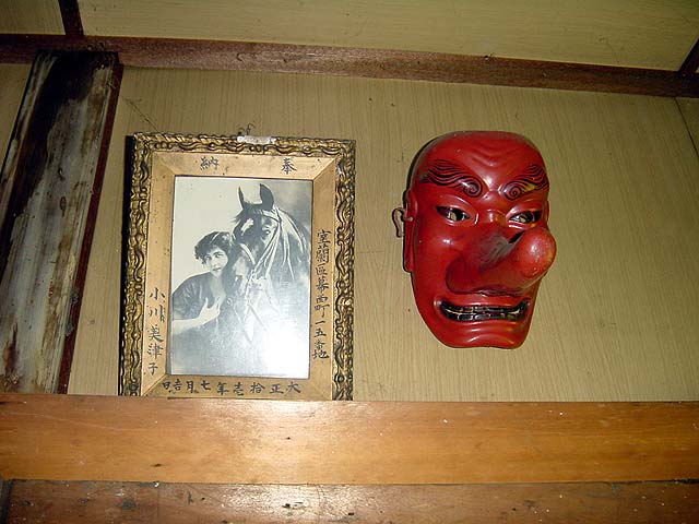 三吉神社(さんきちじんじゃ) 社殿は通称 稲荷町の坂の途中、 忠魂碑の側(登り方向に向って右)に現存しております。 @(旧)高島町史(昭和16年8月5日発行)362ページより引用 明治14年稲荷町に創建される。 創建当時、菊地嘉七の病気が平癒したことを、「秋田大平山三吉神社」の御利益なりとし、 大野豊蔵付近の赤ダモの大木の下に三尺位の自然石に「三吉神社」と刻み(下の画像参照) 安置したことを創始とした。 竹島幸右衛門、松本忠吉、播磨先代諸氏協力の上、秋田三吉神社の御分霊を頂き祀った。 A町民の方々からの聞き取りによる。 その当時の小田質店で従事していた秋田県からの移住者が地元の三吉神社を分祀する形で建立され、 その昔、御払いには、高島稲荷神社の宮司様が行なっておりました。 その後、稲荷町の有志の方々(主に坂の上の方々)によって 三吉講(上・画像)として運営され、 月1回の割合で有志が集まり、御払いや食事など、会合を持っていました。 鳥居は昭和の後期に朽ちて、平成になってから取り除かれたようです。 狛犬は町内の松川様がその創立当時に寄贈されましたが、 昭和の終わりか平成の初めに寄贈者が御祓いを行ない、処分されました。 例大祭は毎年9月15日〜17日に行われ、昭和30年代までは社殿の横で子供相撲や映画の上映が行われました。 平成9年9月15日に高島稲荷神社に合祀され、現在に至っています。 よって御神体は高島稲荷神社へ移管されており、それは金剛力士に似た小さな像と巻物だそうです。 多種多様な奉納品が地元以外からも納められており、その中に「鉄のワラジ」がありました。 それは祀っていた神様を意味しているもので、主たる神様は「ワラジを履いて日本国中を歩き、土木工事を行なった神様」と 云われております。 また、「いくさの神様」、そして石碑から判断して「金毘羅様」も祀っていたと思われ、「海上安全や豊漁」も祈願したと思われます。 詳しい資料が今のところ見つからず、この程度の解説しかできません。 以上の解説に謝りを見つけた方や、その他の詳細がお分かりの方は こちらまで、お寄せください。 この度の調査協力者:大黒昭様 斉藤正博様 平野智春様 佐藤隆哉様 高島稲荷神社様 (ありがとうございました) |