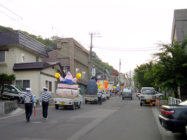 ![]() 出発!高島診療所前にて(前列)(終了間際、ぶれてしまいました。すいません。) 上映時間:13秒