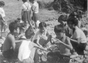 昭和31年6年生 炊事遠足/豊井海岸にて |