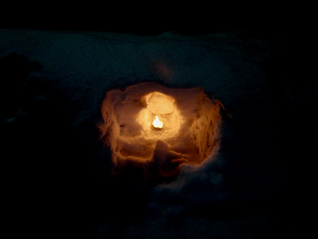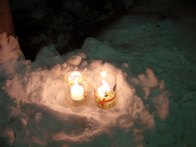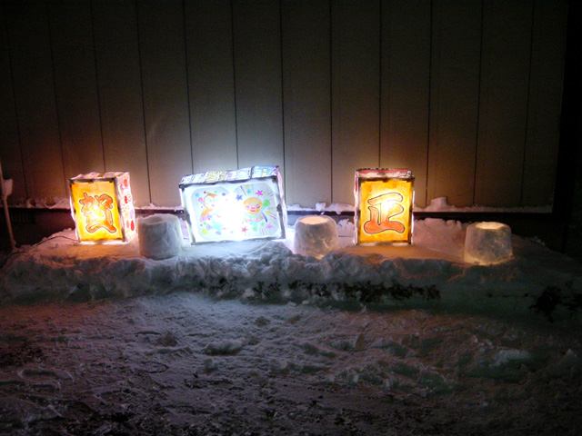 毎年、大晦日の夜、各家庭が作ったアイスキャンドルにより